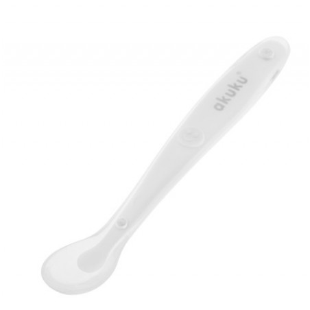 Miękka i elastyczna silikonowa łyżeczka od AKUKU jest przyjazna dla delikatnych dziąseł dziecka. Jej profilowany kształt umożliwia dokładne wybranie pokarmu ze słoiczków, a długa rączka ułatwia karmienie. Niezastąpiona w czasie nauki samodzielnego jedzenia.