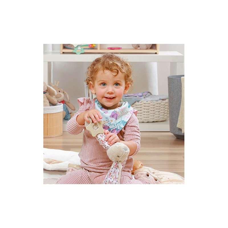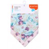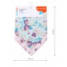 Śliniak apaszka to dwustronna chustka. Jej przód ma wielobarwne nadruki, a tył jest w uniwersalnym kolorze – szary melanż. Używając nap, w prosty sposób obracasz śliniak na drugą stronę.