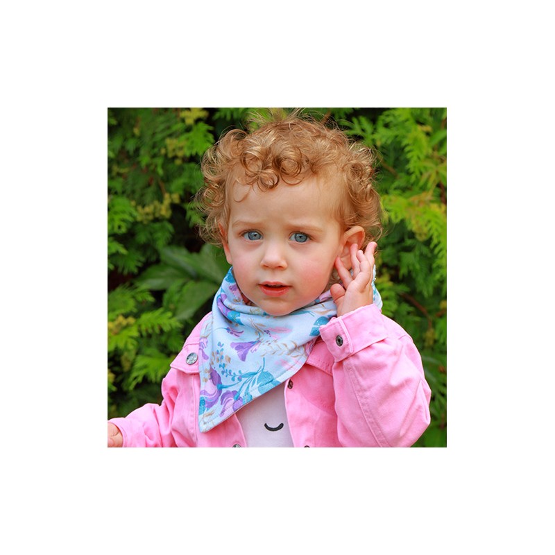 Dzięki regulowanemu zapięciu na napy możesz dopasować śliniaka apaszkę do obwodu szyi dziecka. Apaszka jest odpowiednia dla mniejszych oraz większych dzieci, „rośnie” wraz z nimi.