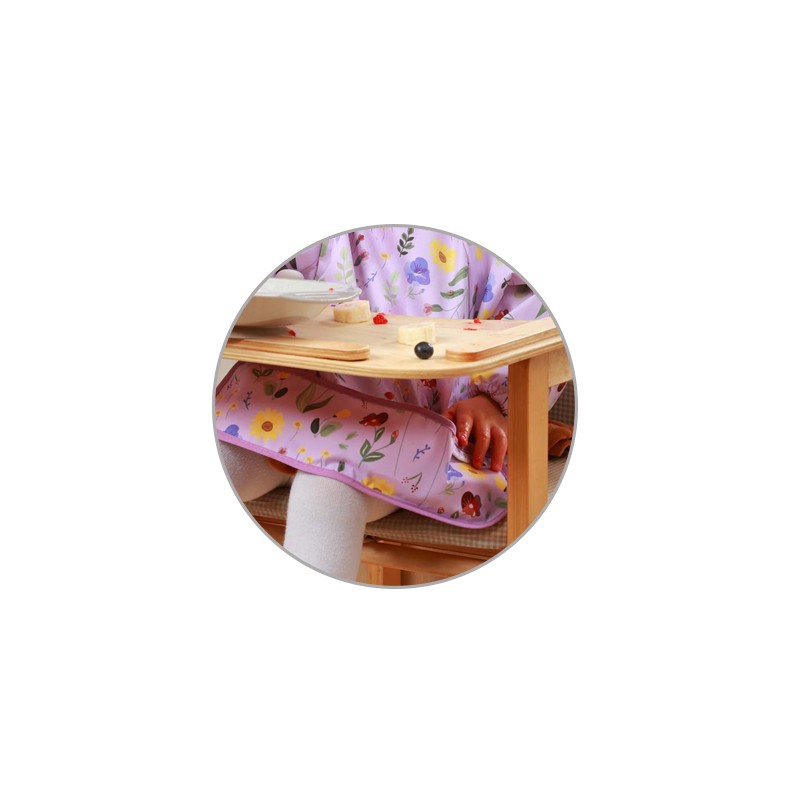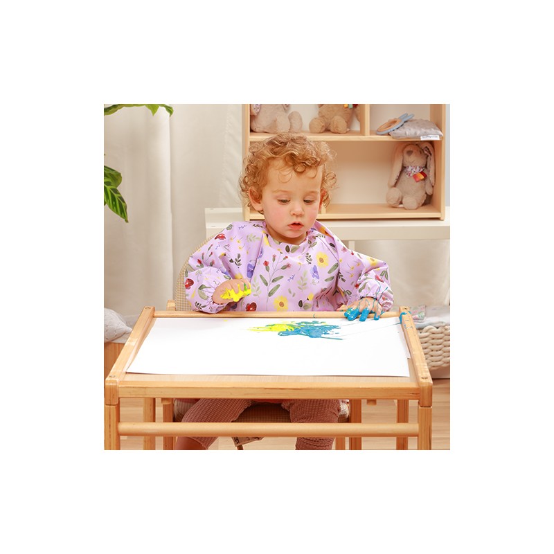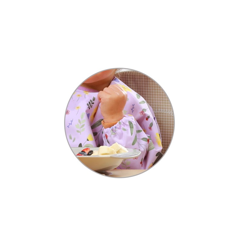 Fartuszek z rękawkami jest wodoodporny i łatwy w utrzymaniu czystości, a więc przyda się podczas nauki samodzielnego jedzenia. Możesz regulować zapięcie śliniaka i bez problemu dopasować je do obwodu szyi malucha.