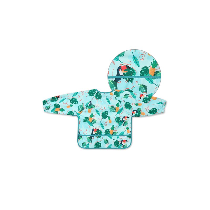 Śliniak z długim rękawem TOUKANS to praktyczny fartuszek, który ochroni ubranie Twojego dziecka. W trakcie jedzenia zabezpieczy nie tylko przód ubranka, ale również rękawy, które „lubią się” brudzić. Dzięki elastycznym gumkom będzie dobrze przylegał nawet do małych dziecięcych rączek. Śliniak z rękawkami ma też praktyczną kieszonkę na okruszki, do której wpadają resztki posiłku.