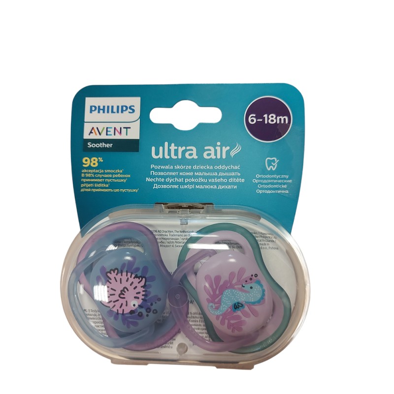 Avent smoczek uspokajający Ultra Air to bardzo lekki, przepuszczający powietrze smoczek dedykowany dzieciom o wrażliwej skórze. Wykonany z silikonu, bezpieczny dla każdego maluszka, wspiera odruch ssania, rozwoju mowy i zgryzu.