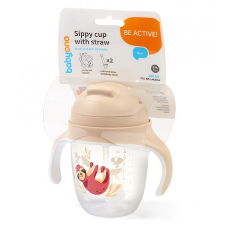 Kubek niekapek z obciążoną słomką beż Babyono