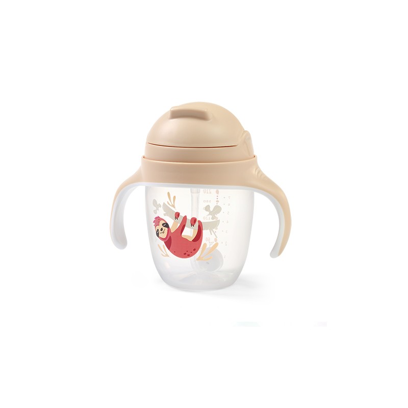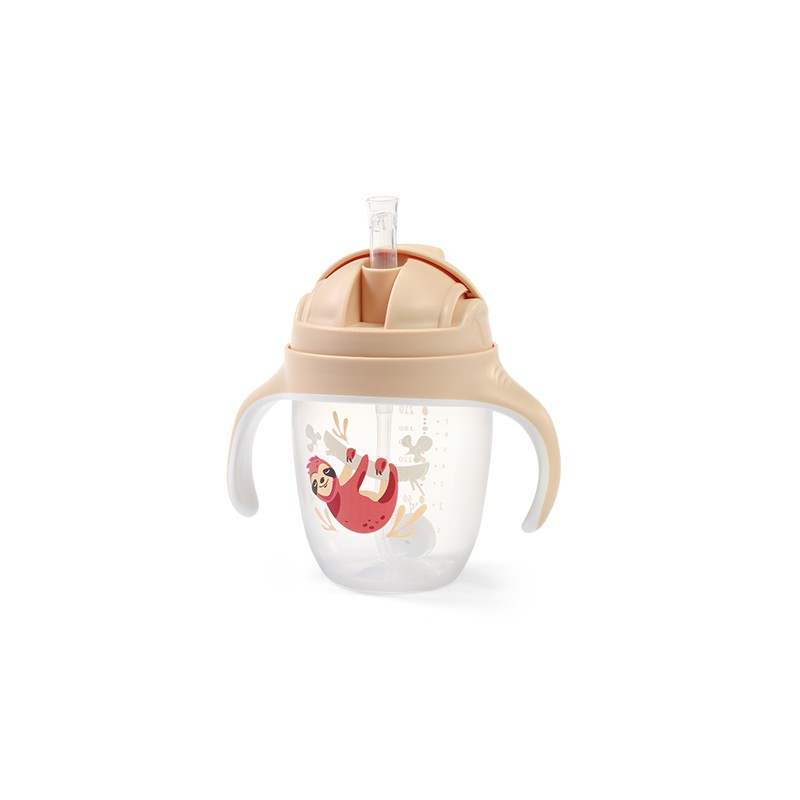Kubek jest idealny do nauki samodzielnego picia. Słomka porusza się wraz z płynem wewnątrz bidonu, dzięki czemu Twój maluch może pić pod każdym kątem, nawet w pozycji półleżącej, czy przechylając kubek do góry dnem.