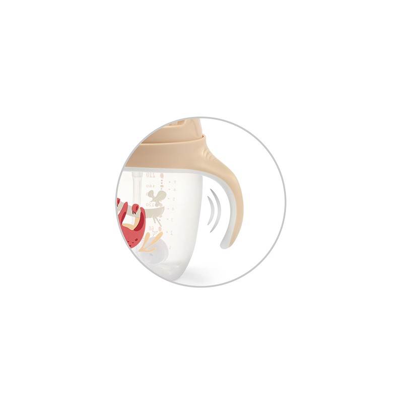 Poręczne, idealnie wyprofilowane uchwyty pozwalają Twojemu dziecku na wygodne trzymanie kubka i pełną kontrolę podczas przechylania i dozowania picia.