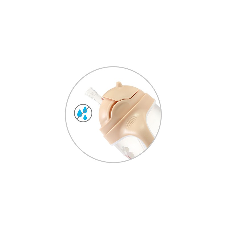 Specjalna konstrukcja kubka sprawia, że nie wyleje się z niego ani jedna kropla. Silikonowy, miękki ustnik ma wbudowane zabezpieczenie, które uniemożliwi rozlanie napoju.