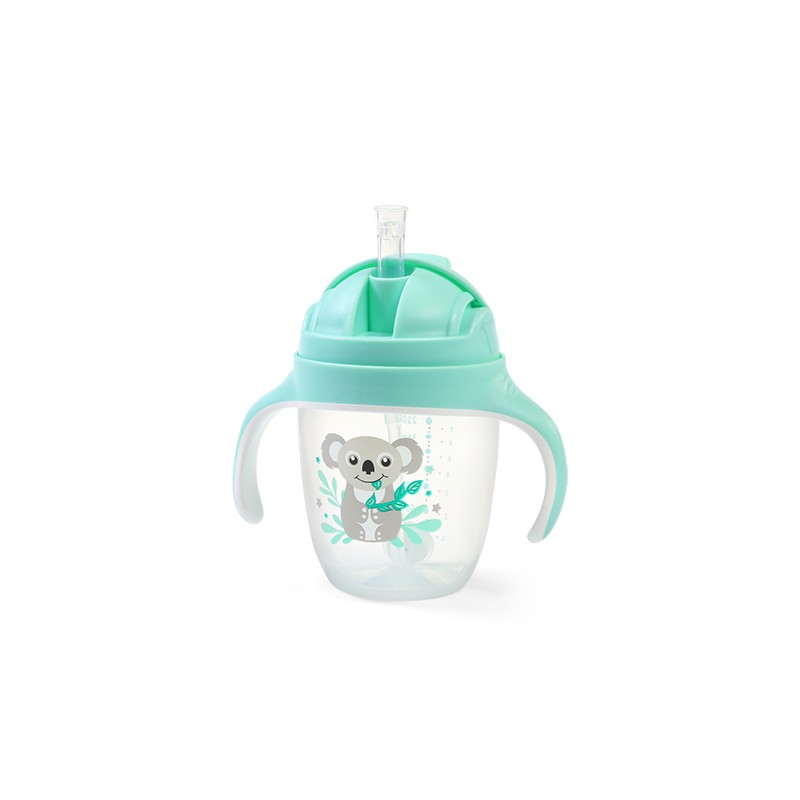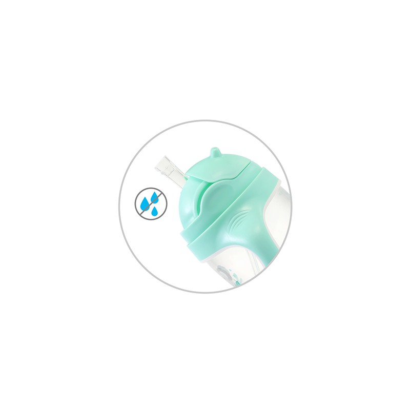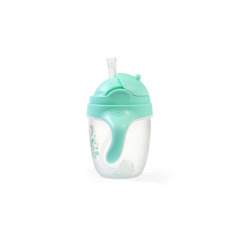 Kubek jest idealny do nauki samodzielnego picia. Słomka porusza się wraz z płynem wewnątrz bidonu, dzięki czemu Twój maluch może pić pod każdym kątem, nawet w pozycji półleżącej, czy przechylając kubek do góry dnem.