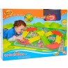 Zestaw składa się z pojazdu, kartonowej maty oraz 26 elementów, które dziecko układa i tworzy trasę dla swojego auta. Pojazd miga światełkami, wydaje dźwięki i mówi po polsku, zachęcając dziecko do zabawy.