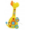 Graj na gitarze, idź na spacer z żyrafą. Gitara Żyrafa to zabawka, która może pełnić zarówno funkcję instrumentu muzycznego, jak i ciągacza. Bezpiecznej długości linka sprawi, że maluch podczas spaceru nie zaplącze się w nią. Żyrafa podczas jazdy wydaje śmieszne dźwięki. Szybka zmiana z ciągacza w gitarę to dodatkowa atrakcja. Na szyi żyrafy jest 5 różnokolorowych, świecących klawiszy.