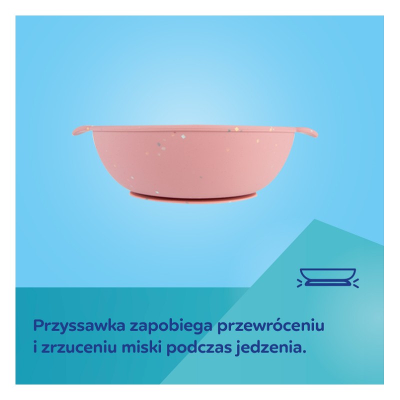 • Przyssawka zapobiega przypadkowemu strąceniu miseczki podczas jedzenia.