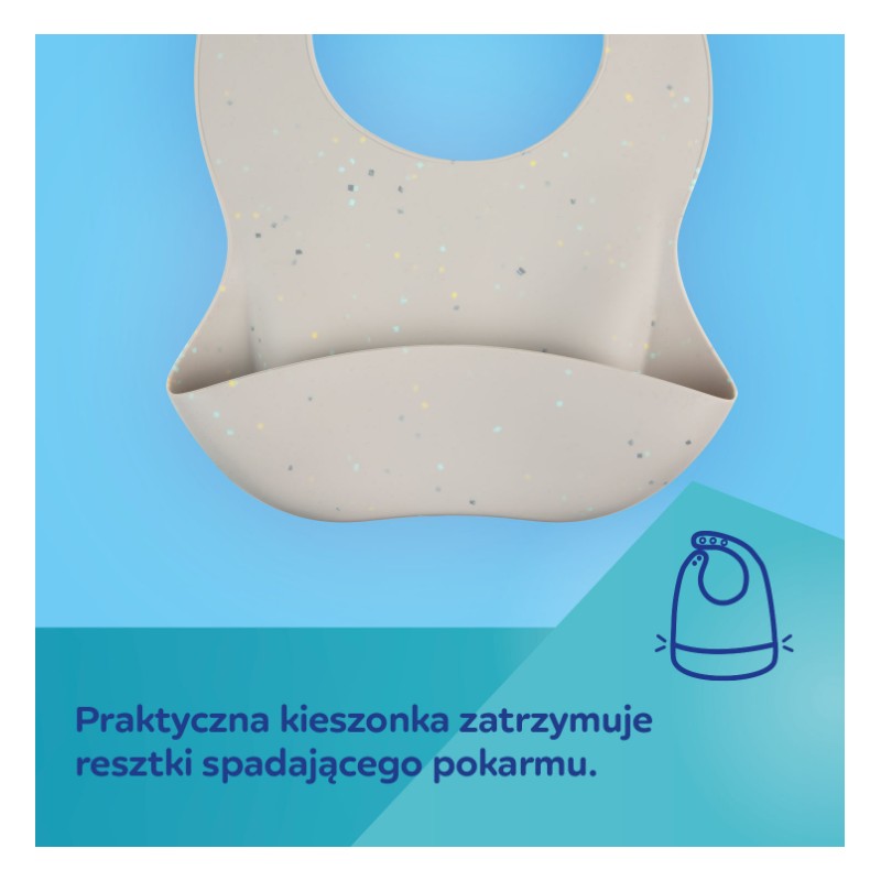 Wodoodporny śliniak silikonowy z kieszonką jest niezbędny podczas rozszerzania diety Maluszka i pierwszych samodzielnych posiłkach.
