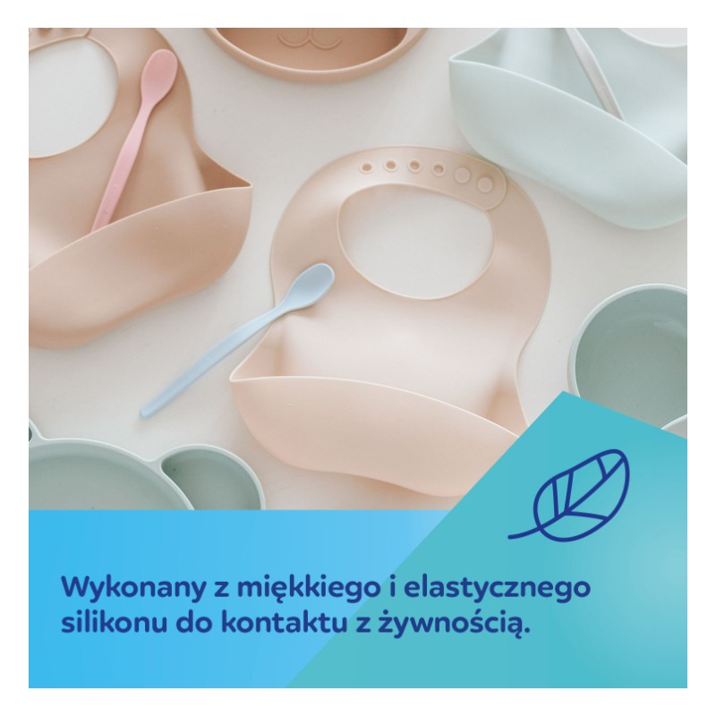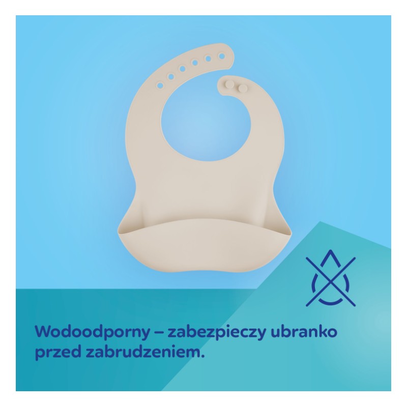 Wodoodporny śliniak silikonowy z kieszonką jest niezbędny podczas rozszerzania diety Maluszka i pierwszych samodzielnych posiłkach.