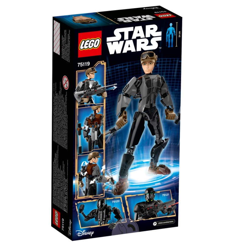 - Figurka Jyn Erso, którą możesz zbudować i ustawiać w rozmaitych pozach, ma strzelający karabin, ruchome ramiona i pałki zaczepiane na plecach.