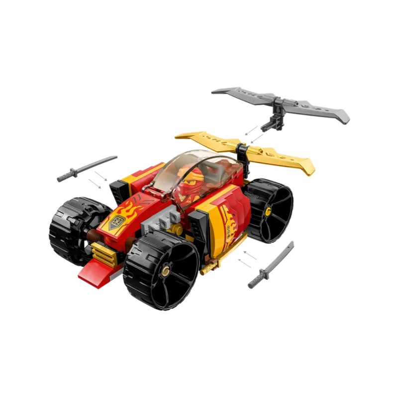 Zestaw zawiera fantastyczną minifigurkę Kaia uzbrojoną w dwie złote katany, którą można umieścić w kokpicie, by prowadzić czerwony samochódNINJAGO. Zainspiruje on dzieci do wielogodzinnej zabawy w wyścigi po ulicach miasta NINJAGO.