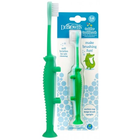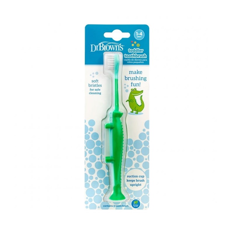 Szczoteczka Krokodylek Dr Brown’s idealna dla pierwszych mlecznych ząbków, przeznaczona do delikatnego szczotkowania.