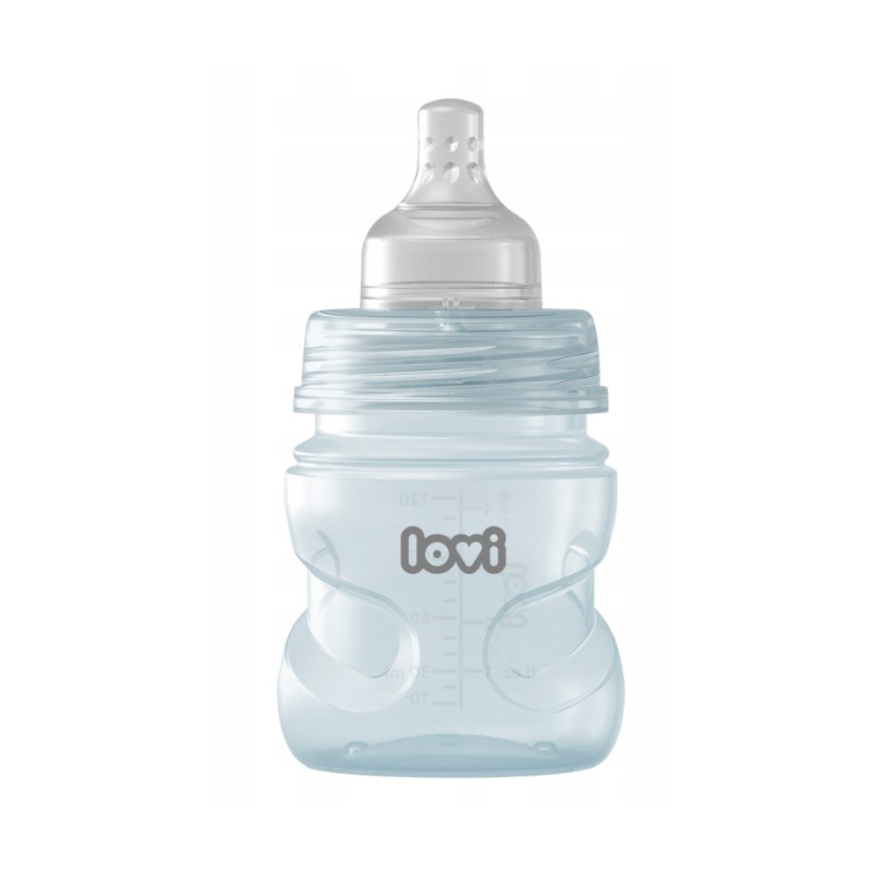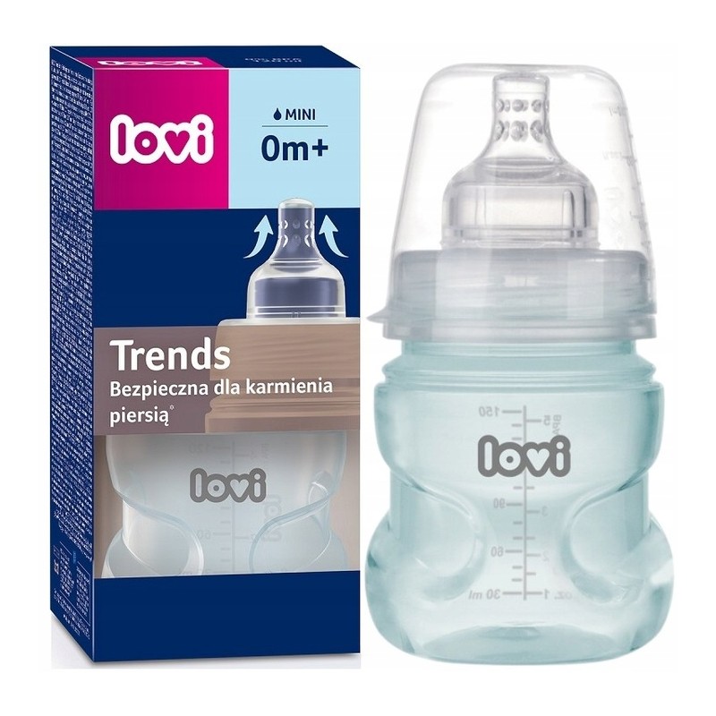 Butelka jest kompatybilna z laktatorami LOVI. Butelka LOVI Trends dostępna jest w trzech kolorach: beżowym, różowym i zielonym.