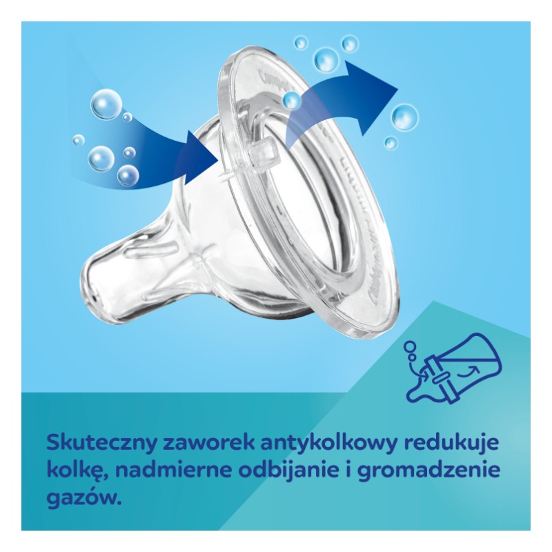 Butelka antykolkowa Canpol babies EasyStart została stworzona z myślą o szczęśliwym brzuszku dziecka. Specjalny zaworek antykolkowy zapobiega gromadzeniu się pęcherzyków powietrza w pokarmie, co w połączeniu z odpowiednio dobraną pozycją do karmienia pozwala skutecznie eliminować dolegliwości brzuszkowe Maluszka związane z kolką i wzdęciami.