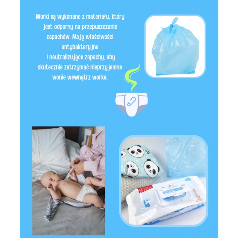 Głównym zadaniem worków jest skuteczne zapobieganie rozprzestrzenianiu się nieprzyjemnych zapachów pochodzących z zużytych pieluszek.