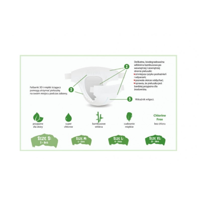 To delikatne, jednorazowe pieluszki, których zewnętrzna warstwa oraz wyściółka zostały wykonane z włókniny bambusowej - w trosce o najbardziej wrażliwą skórę.