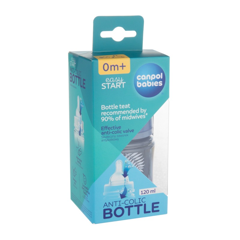 Butelka antykolkowa Canpol babies EasyStart została stworzona z myślą o szczęśliwym brzuszku dziecka. Specjalny zaworek antykolkowy zapobiega gromadzeniu się pęcherzyków powietrza w pokarmie, co w połączeniu z odpowiednio dobraną pozycją do karmienia pozwala skutecznie eliminować dolegliwości brzuszkowe Maluszka związane z kolką i wzdęciami.