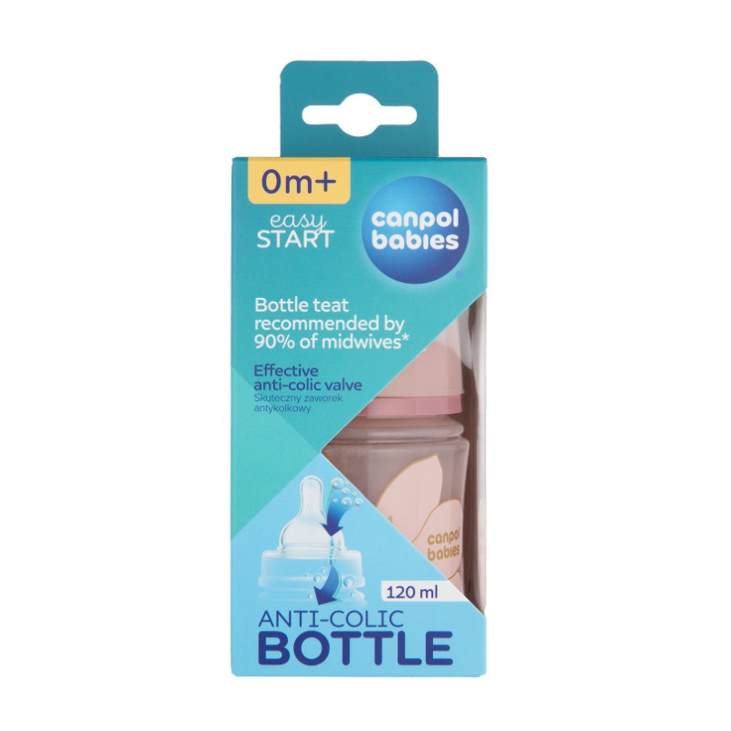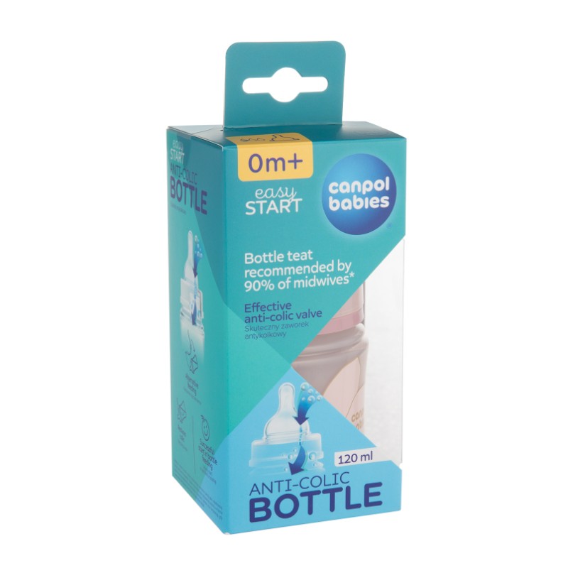 Butelka antykolkowa Canpol babies EasyStart została stworzona z myślą o szczęśliwym brzuszku dziecka. Specjalny zaworek antykolkowy zapobiega gromadzeniu się pęcherzyków powietrza w pokarmie, co w połączeniu z odpowiednio dobraną pozycją do karmienia pozwala skutecznie eliminować dolegliwości brzuszkowe Maluszka związane z kolką i wzdęciami.