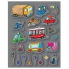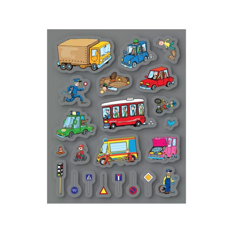 W tym zeszycie z naklejkami najmłodsi poznają różne środki transportu, które można spotkać na drodze, torach, na wodzie, placu budowy, a także w kosmosie.