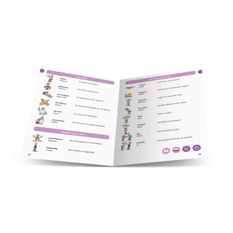 Słowa są przedstawione za pomocą obrazków, aby można było je łatwiej zapamiętać. Na ostatnich stronach książki jest także alfabetyczny spis haseł ułatwiający wyszukiwanie.