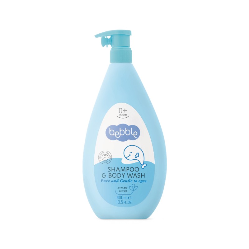 Łagodny SZAMPON I PŁYN DO MYCIA CIAŁA BEBBLE jest odpowiedni do mycia całego ciała oraz włosów.