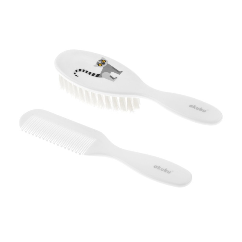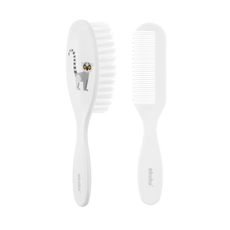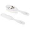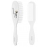 Bezpieczna i delikatna szczotka do czesania dziecięcych włosów wykonana z włosia sztucznego w zestawie z grzebieniem.