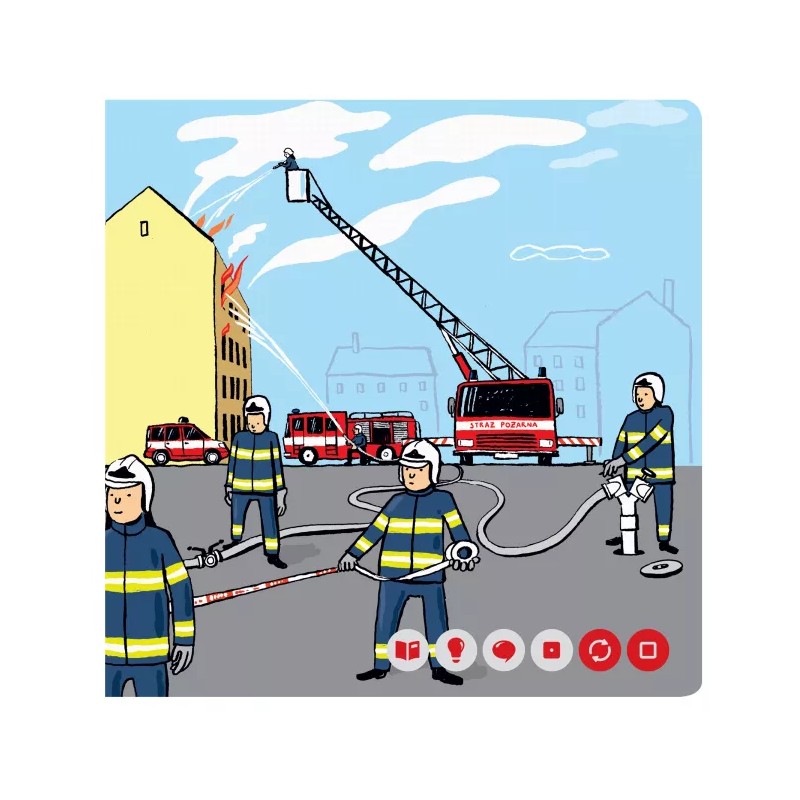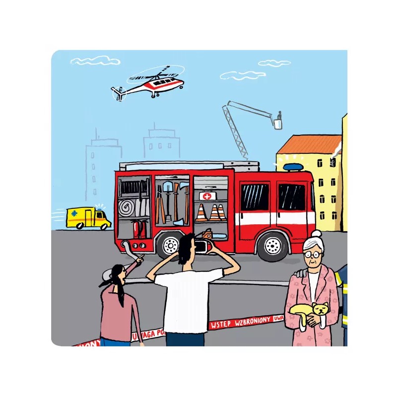 W książce są przedstawione sytuacje, w których możesz otrzymać pomoc strażaków.