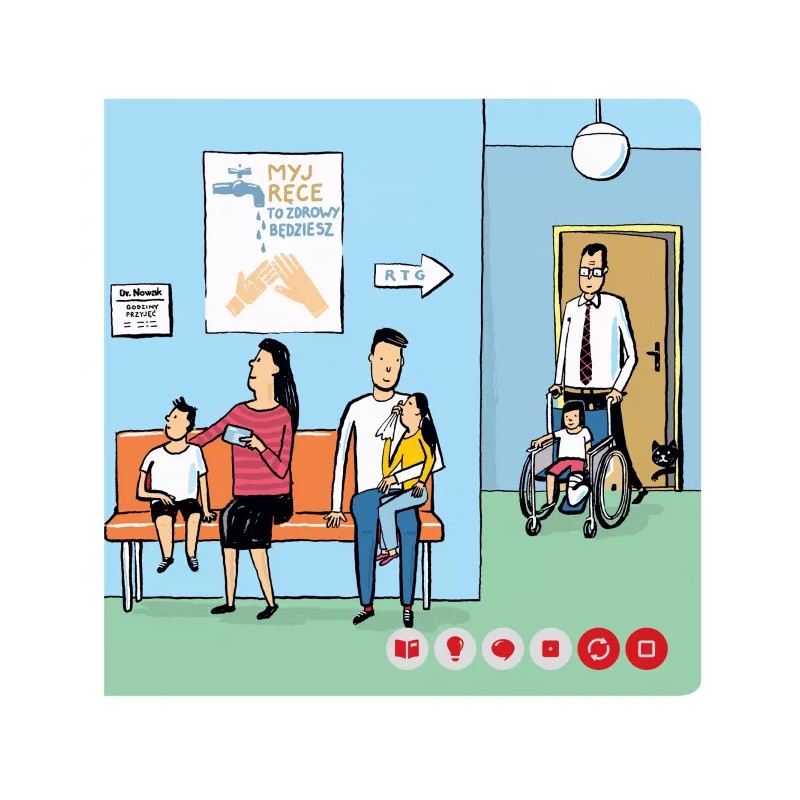Terminy i procedury medyczne są objaśnione w przyjazny dla dziecka sposób.