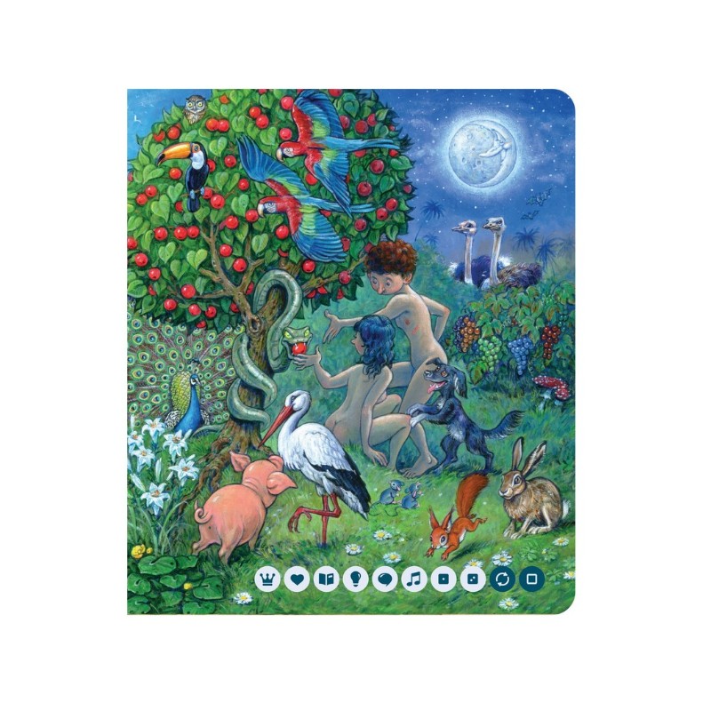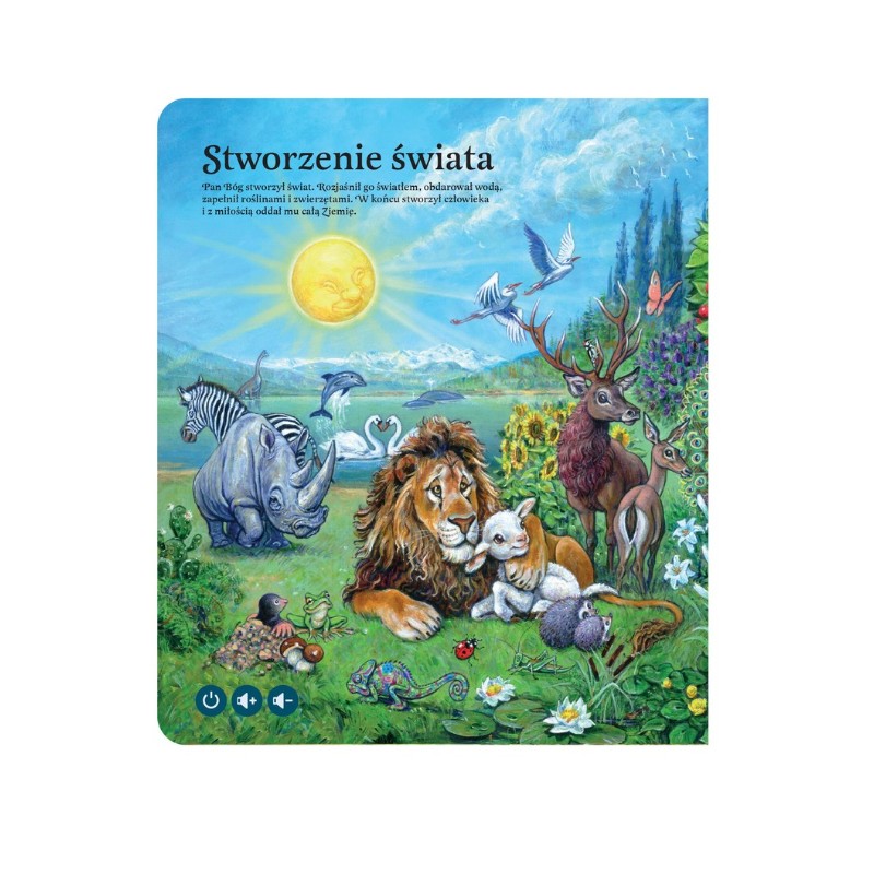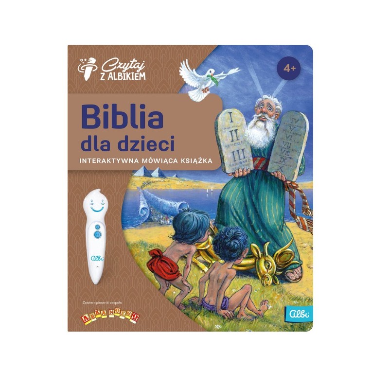 Interaktywna Biblia dla dzieci z serii Czytaj z Albikiem to zbiór najważniejszych historii ze Starego i Nowego Testamentu, które przedstawione są na pięknych ilustracjach. Z książki można usłyszeć długie historie, np. o stworzeniu świata, Noem, cudach Jezusa. To nie wszystko - opowieściom towarzyszą piosenki zespołu Arka Noego! Są także modlitwy dla dzieci oraz quizy sprawdzające wiedzę. Książkę czyta aktor Marcin Kobierski i inni wspaniali lektorzy ze studia Katolik.tv. Treści zawarte w Biblii dla dzieci uzyskały akceptację Kościoła Katolickiego i zgodę na publikację (książka ma tzw. Imprimatur).