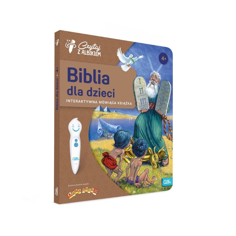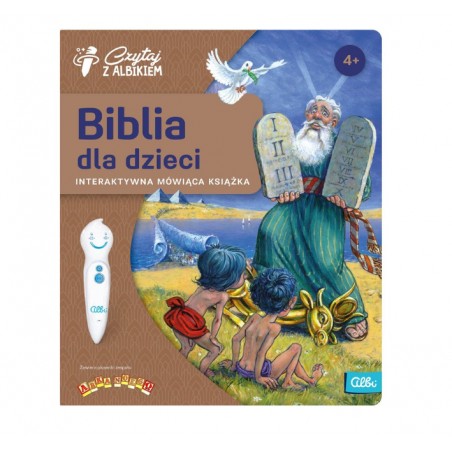 Interaktywna Biblia dla dzieci z serii Czytaj z Albikiem to zbiór najważniejszych historii ze Starego i Nowego Testamentu, które przedstawione są na pięknych ilustracjach. Z książki można usłyszeć długie historie, np. o stworzeniu świata, Noem, cudach Jezusa.