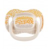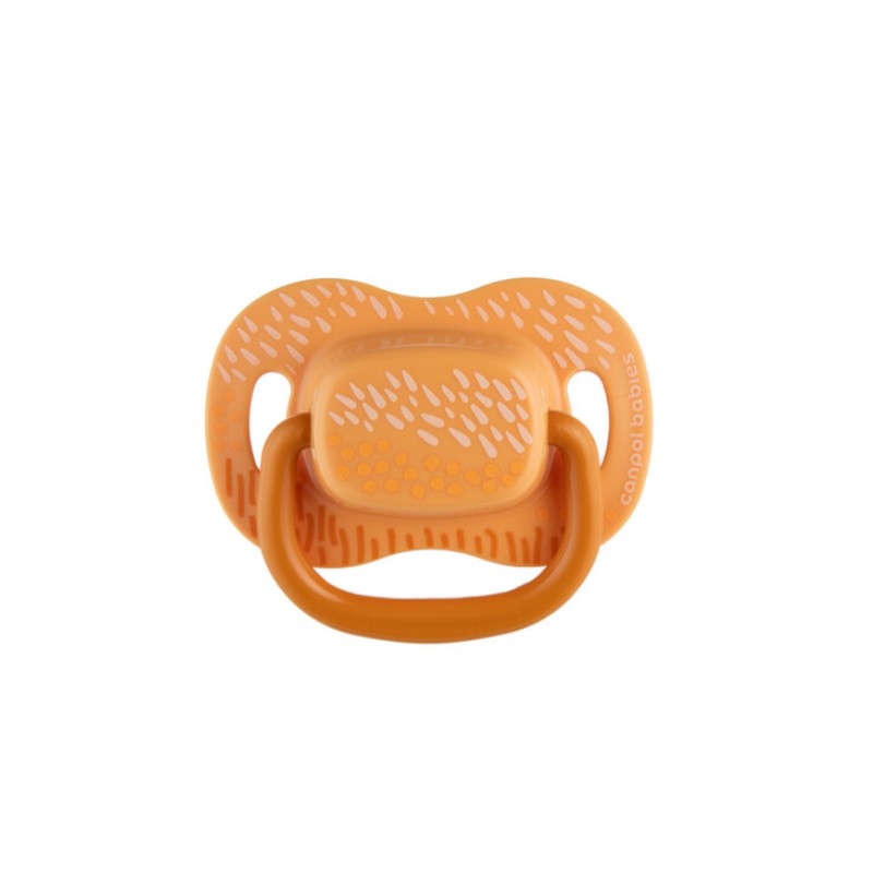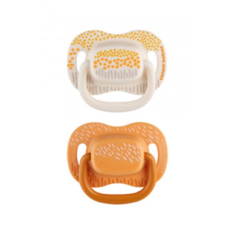 Gumka została wykonana z najwyższej jakości, bezpiecznego i delikatnego silikonu. Jest bezzapachowa i bezsmakowa, co ułatwia akceptację smoczka przez dziecko. Specjalnie wyprofilowana tarczka umożliwia Maluszkowi swobodne oddychanie przez nosek i minimalizuje odciskanie się smoczka na delikatnej buzi dziecka. Dodatkowe otworki wentylacyjne pozwalają skórze oddychać i zapobiegają podrażnieniom.