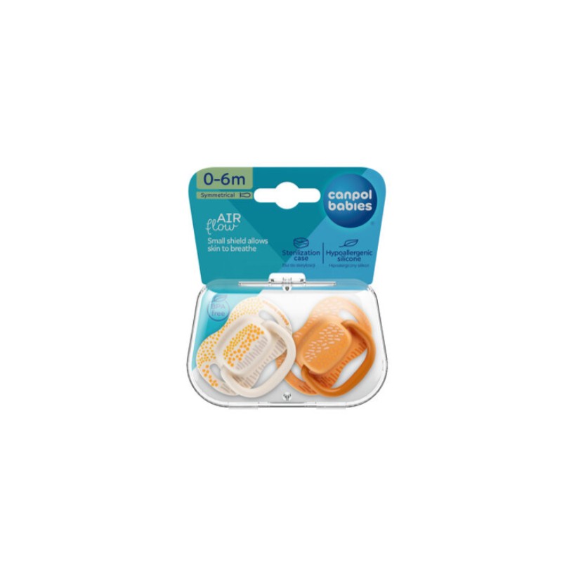 Smoczek silikonowy Canpol babies 0-6m symetryczny Mountains jest trwały i odporny na odkształcenia. Smoczek jest bezpieczny i łatwy do utrzymania w czystości, dzięki nowoczesnemu etui, które może służyć zarówno do przechowywania, ale też do szybkiej i wygodnej sterylizacji w kuchence mikrofalowej. Wystarczy odrobina wody i 2 minuty, aby zapewnić smoczkom higieniczną czystość.