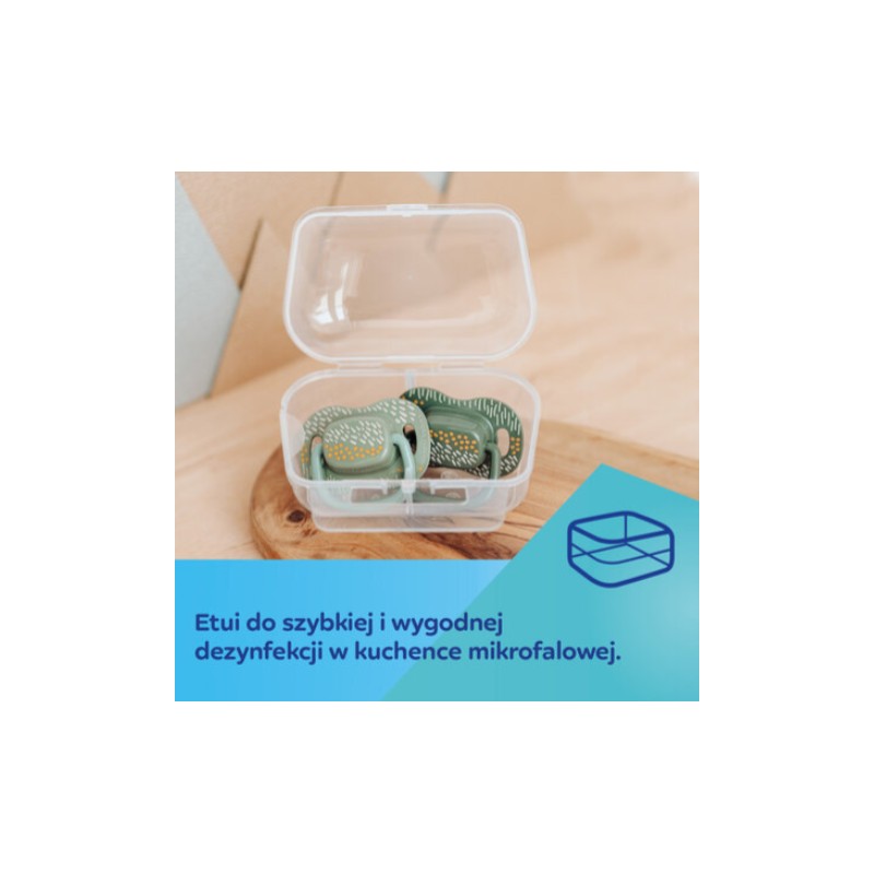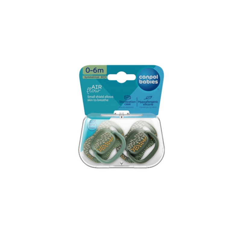 Smoczek silikonowy Canpol babies 0-6m symetryczny Mountains jest trwały i odporny na odkształcenia. Smoczek jest bezpieczny i łatwy do utrzymania w czystości, dzięki nowoczesnemu etui, które może służyć zarówno do przechowywania, ale też do szybkiej i wygodnej sterylizacji w kuchence mikrofalowej. Wystarczy odrobina wody i 2 minuty, aby zapewnić smoczkom higieniczną czystość.