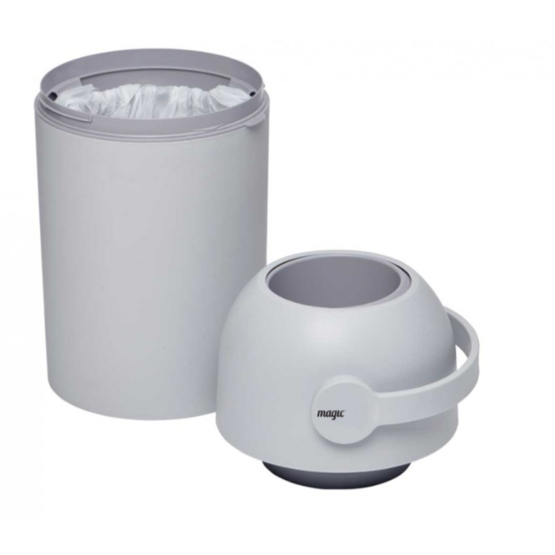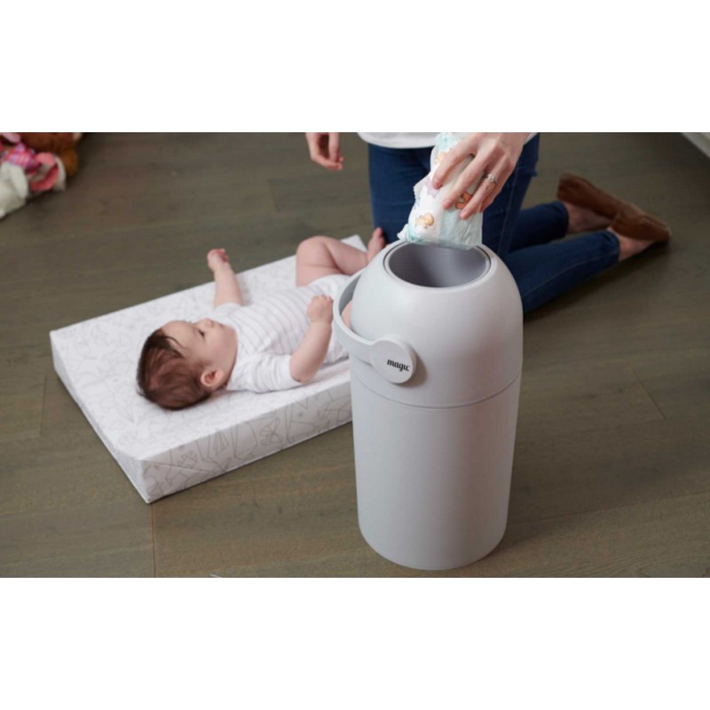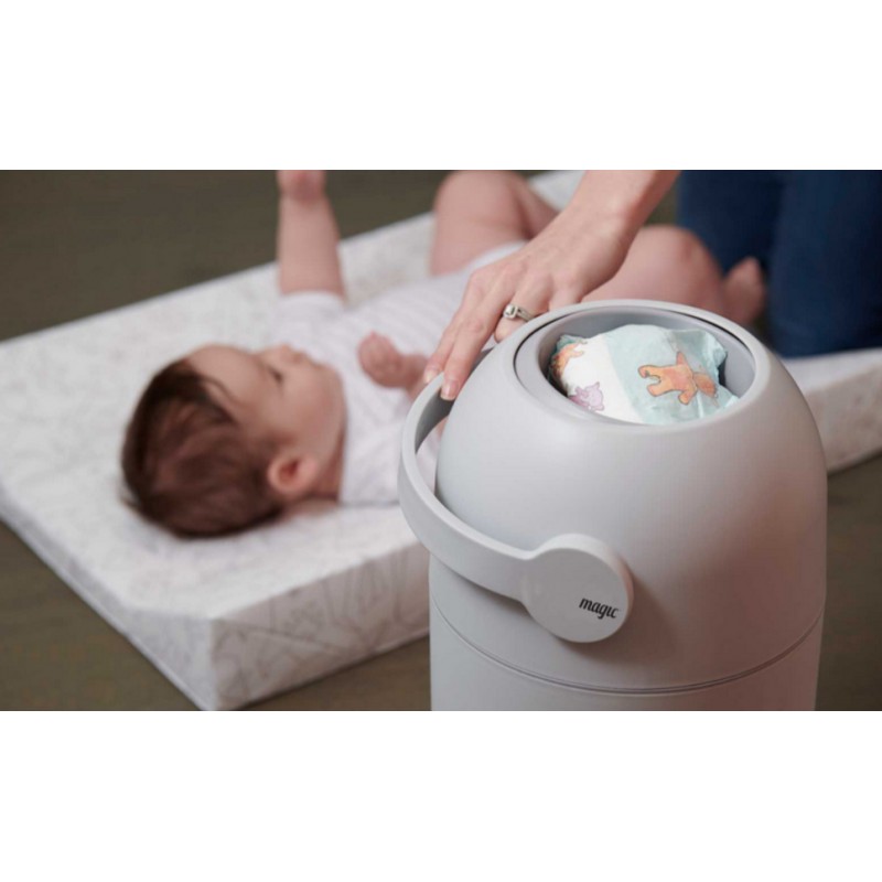 Opatentowany kosz na pieluchy Magic Essential, który zapewnia ochronę przed nieprzyjemnymi zapachami, zarazkami i bakteriami w pokoju dziecka lub w innych pomieszczeniach.