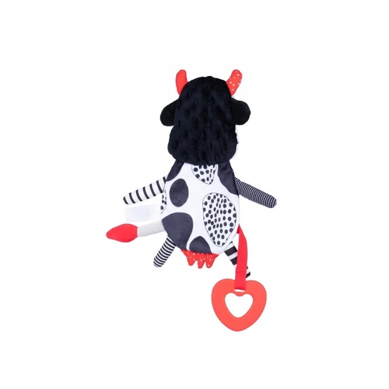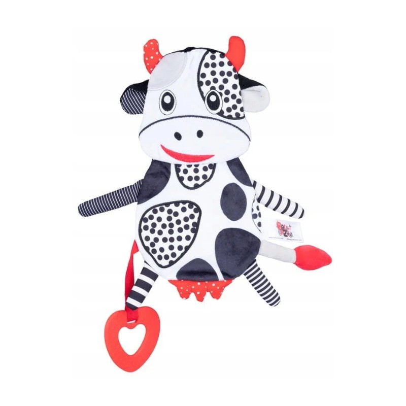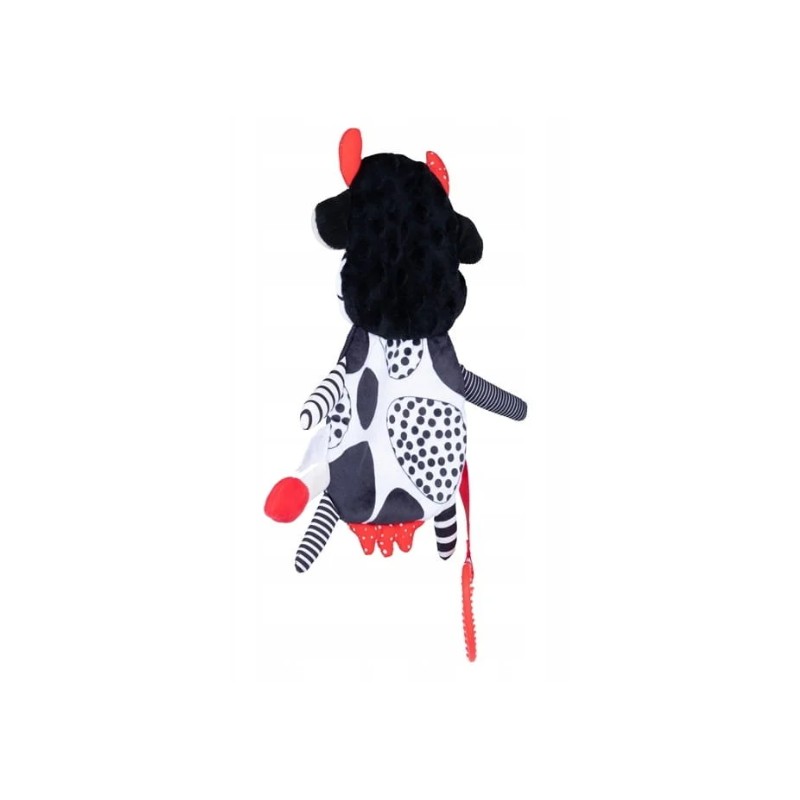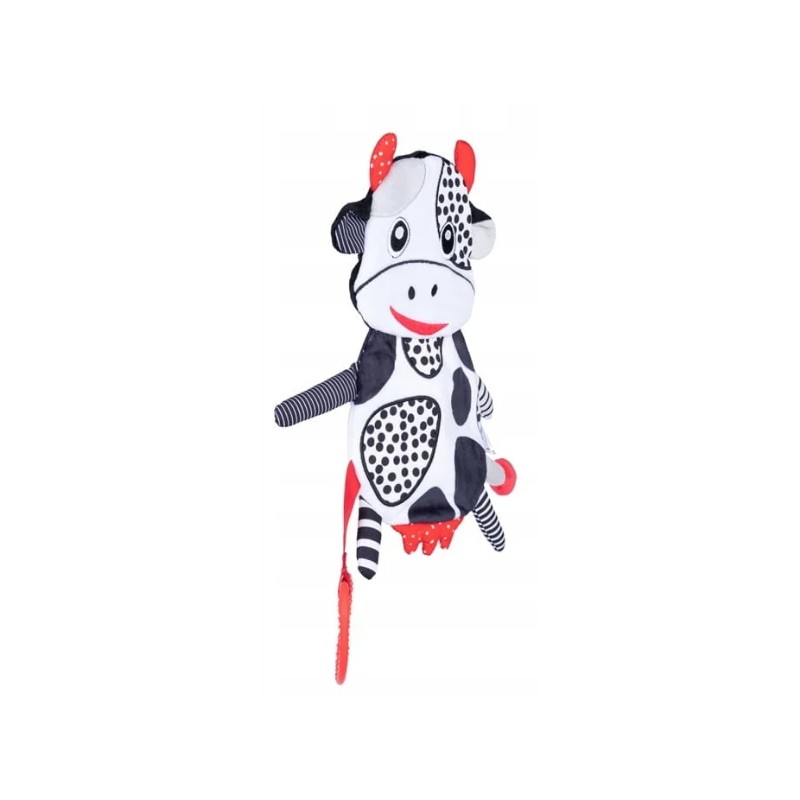 Ta urocza krówka posiada wyjątkowe zdolności. Wesoło szeleści podczas przytulania, a do tego rozwija umiejętności poznawcze malucha, za sprawą zróżnicowanych faktur materiałów, z których została wykonana. Jej kontrastowe kolory stymulują zmysł wzroku bobasa.
