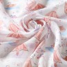 Muślin to tkanina oddychająca. Lekki splot włókien sprawia, że pieluszki przepuszczają powietrze. Także w czasie spaceru, kiedy użyjesz ich na przykład jako przewiewnego otulacza albo kocyka.