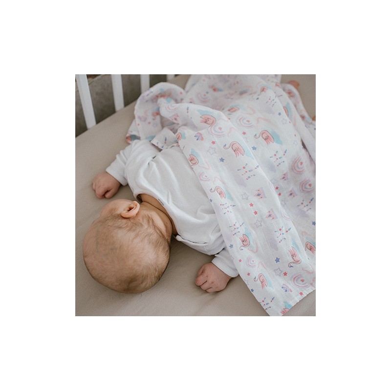 Pieluszki muślinowe można wykorzystać przy różnych czynnościach pielęgnacyjnych w domu i poza nim. Przydają się nie tylko przy przewijaniu. Mogą służyć jako kocyk, ręcznik, prześcieradło albo przytulanka pomagająca w zasypianiu.