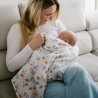 Muślin to tkanina oddychająca. Lekki splot włókien sprawia, że pieluszki przepuszczają powietrze. Także w czasie spaceru, kiedy użyjesz ich na przykład jako przewiewnego otulacza albo kocyka.