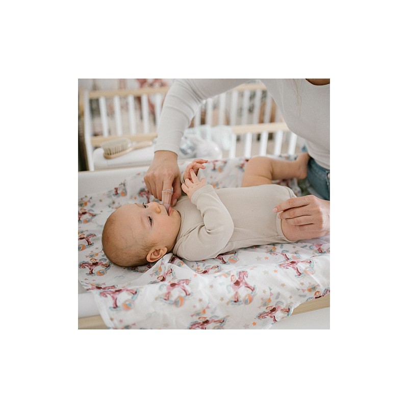 Latem materiał przyjemnie chłodzi, a zimą zatrzymuje ciepło. Dlatego możesz wykorzystać pieluszki jako otulacz lub kocyk. Tkanina dobrze przepuszcza powietrze, dlatego nie musisz martwić się, że dziecku będzie za gorąco.