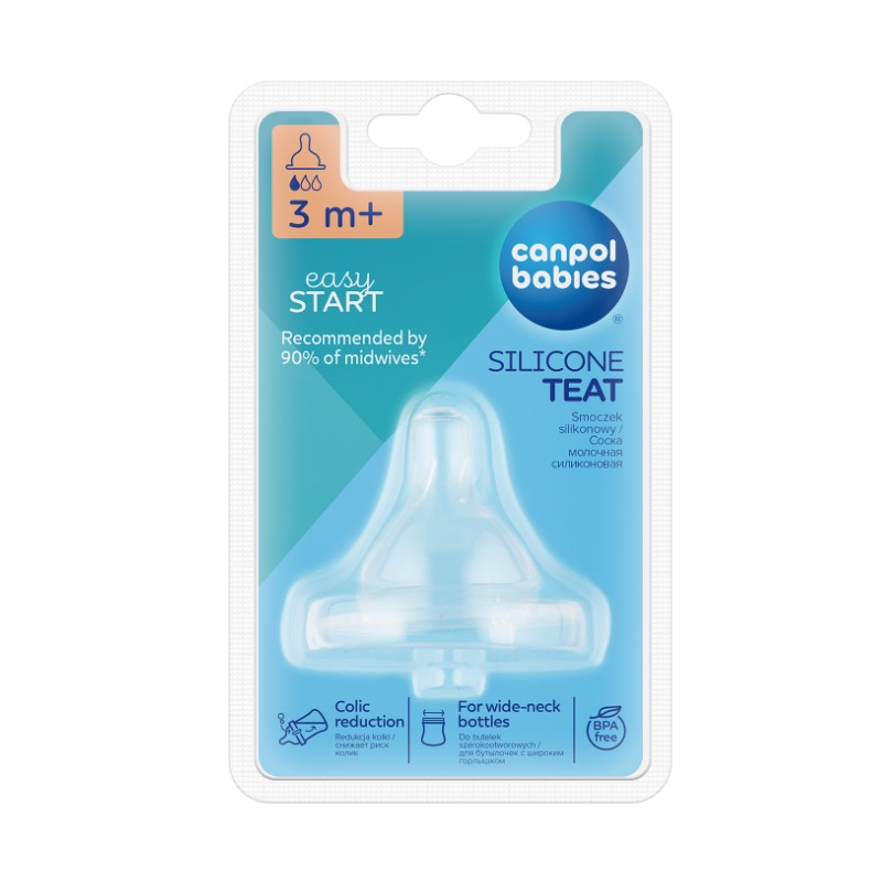 Antykolkowy smoczek wolny do butelek szerokich EasyStart przypomina kształtem pierś mamy, dzięki czemu umożliwia łączenie karmienia naturalnego z karmieniem butelką.