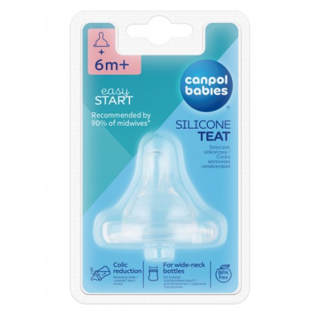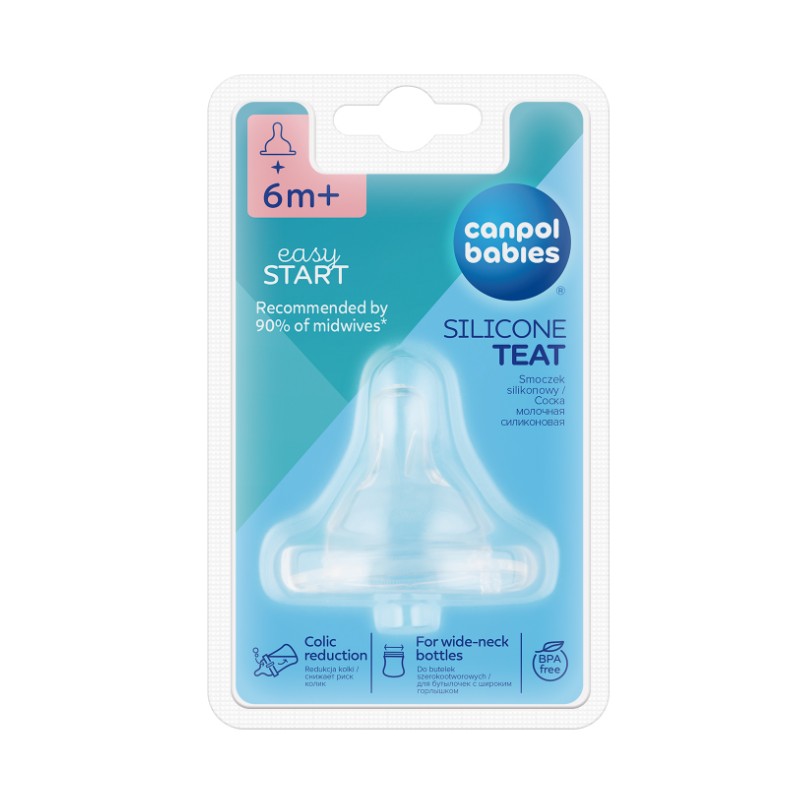 Silikonowy smoczek do kaszki Canpol babies EasyStart wykonany jest z bezpiecznego silikonu wolnego od BPA.