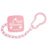 Łańcuszek I LOVE MUMMY zabezpieczy ulubiony smoczek do uspokajania dziecka przed upadkiem, zabrudzeniem lub zgubieniem. Nieskomplikowana konstrukcja umożliwia szybkie zapięcie łańcuszka jedną ręką.