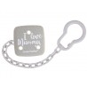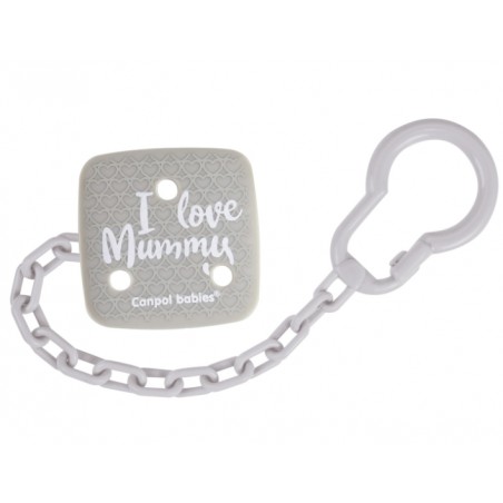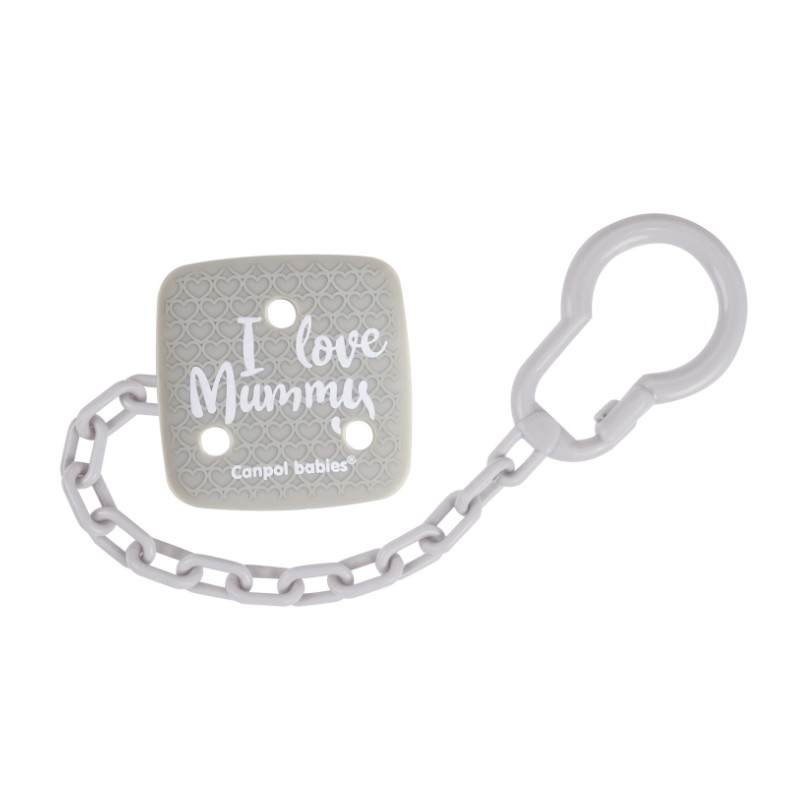 Łańcuszek I LOVE MUMMY zabezpieczy ulubiony smoczek do uspokajania dziecka przed upadkiem, zabrudzeniem lub zgubieniem. Nieskomplikowana konstrukcja umożliwia szybkie zapięcie łańcuszka jedną ręką.