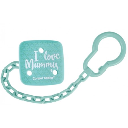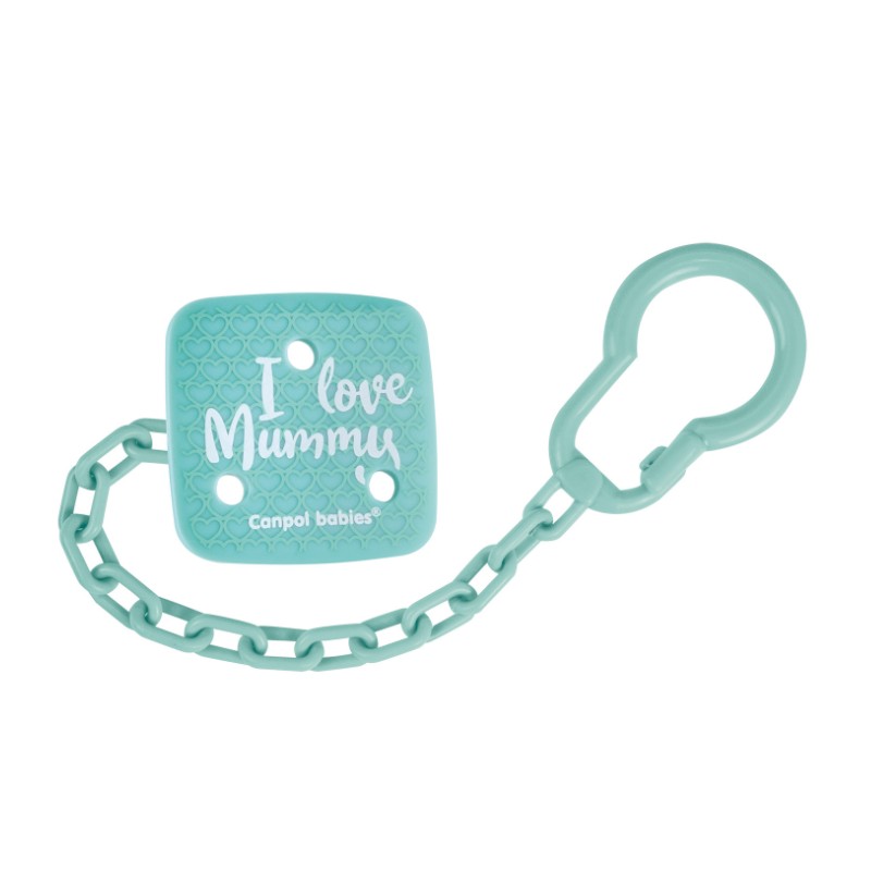 Łańcuszek I LOVE MUMMY zabezpieczy ulubiony smoczek do uspokajania dziecka przed upadkiem, zabrudzeniem lub zgubieniem. Nieskomplikowana konstrukcja umożliwia szybkie zapięcie łańcuszka jedną ręką.