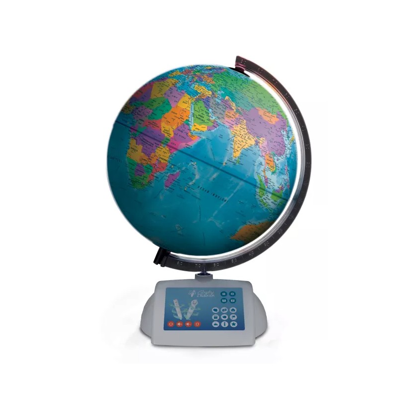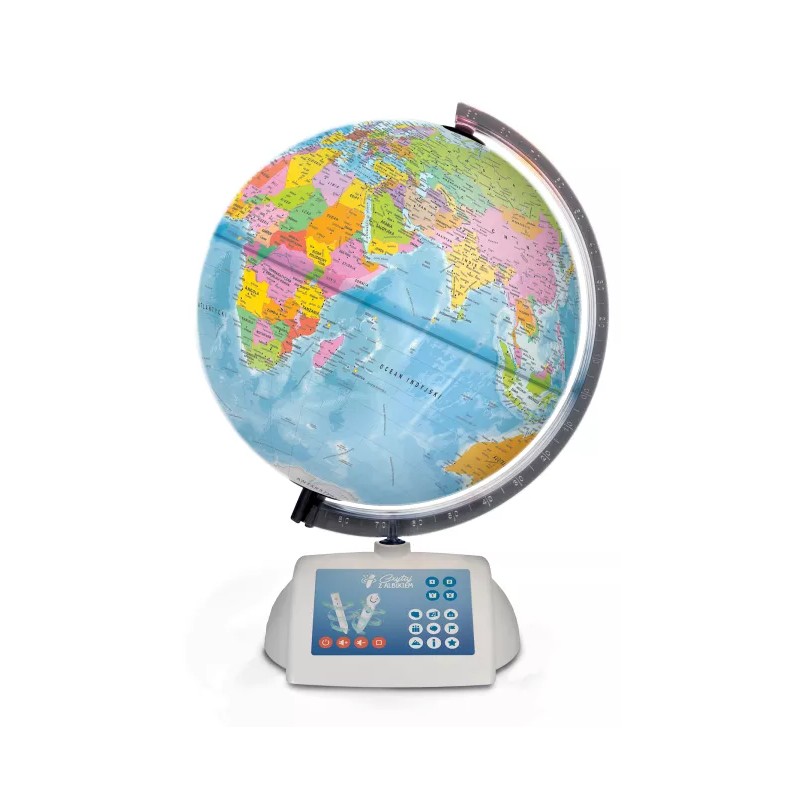 Globus, który masz przed sobą, doskonale odzwierciedla mapę świata, a do tego potrafi mówić. Archimedes z pewnością byłby zaskoczony! Wiadomości zawarte w globusie można usłyszeć dzięki mówiącemu pióru Albik, które odczyta wiele informacji i ciekawostek o prawie 200 krajach świata. Firma Tecnodidattica zaprojektowała ten globus ze specjalistami w dziedzinie geografii. Dzięki temu dane zawarte w oprogramowaniu są możliwie najdokładniejsze i najaktualniejsze. Z pomocą interaktywnego globusa dzieci poznają wszystkie kraje i ich stolice. Usłyszą hymny i liczne ciekawostki. Dzięki quizom będą się świetnie bawić i utrwalać wiedzę.