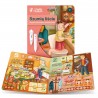 Atrakcyjne quizy o trzech stopniach trudności umożliwią małym słuchaczom doskonalenie spostrzegawczości, a także wprawienie się w rozróżnianie głosek, sylab i rymów.