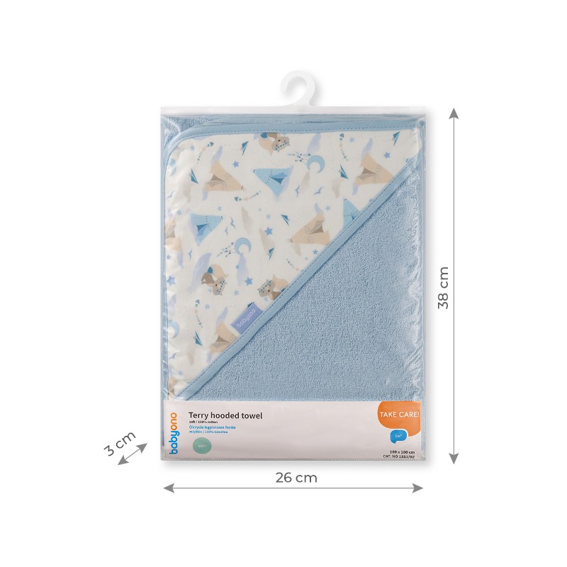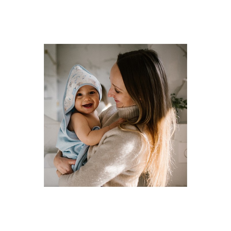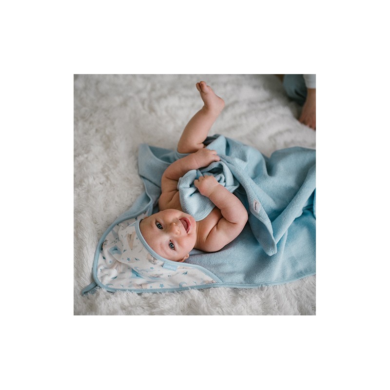 100% z bawełna typu frotte sprawia, że produkt idealnie absorbuje wodę, nie podrażniając przy tym delikatnej skóry dziecka.